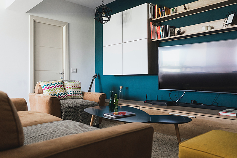 客廳顧名思義,理論上應該就是拿來接待客人的場所,所以有個舒適的沙發讓客人感到賓至如歸自然合情合理. 但是說到電視,除了會議簡報或排隊看診以外,用電視來招待賓客似乎怎麼想都有那麼點怪. 所以可以發現,電視出現在客廳其實是把「接待空間」與「起居休閒空間」整合起來的一種作法,只是在許多不知所謂的承襲仿效之下,它似乎就成了一種一旦缺少就讓人覺得奇怪的東西.那麼換個方向來想,也許客廳可以和餐廳整合,與來客輕鬆的在餐吧聊天享用美食;又或是與書房結合,讓會客場所同時也飄著文藝的氣息. 都能夠完整的呈現出客廳的機能,同時又整合進了不一樣的元素,不讓客廳被一成不變的電視牆給束縛著