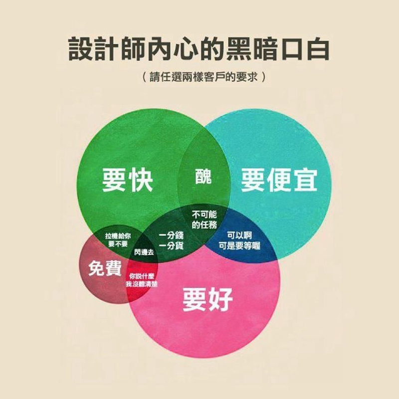 上面這圖片的各種版本曾經在網路上傳得沸沸揚揚, 恐怕每個設計師看到這張圖都是心有戚戚焉.