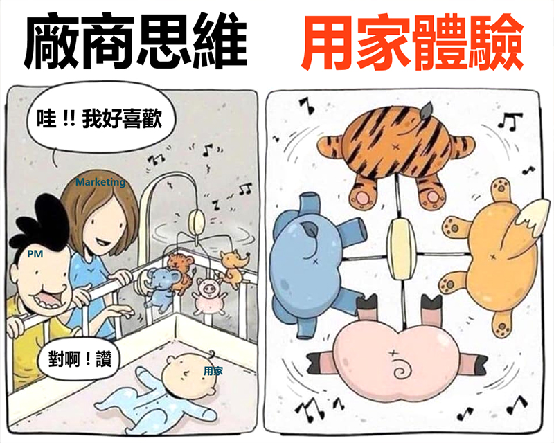 理想中的設計師應該要能同時站在User與PM兩個位置來審視成品,以⼀個嬰兒床來說,給予幼兒舒適放鬆的環境很重要,但不能忘記同時也有取悅⼤⼈的效果在。轉換成室內設計的立場則是:設計師既要理解並滿⾜客⼾的喜好,同時也要從⾃⼰的專業立場去導正客⼾甚⾄是⾃⼰的錯誤需求,這樣⼦才會是⼀個成熟且專業的室內設計師。