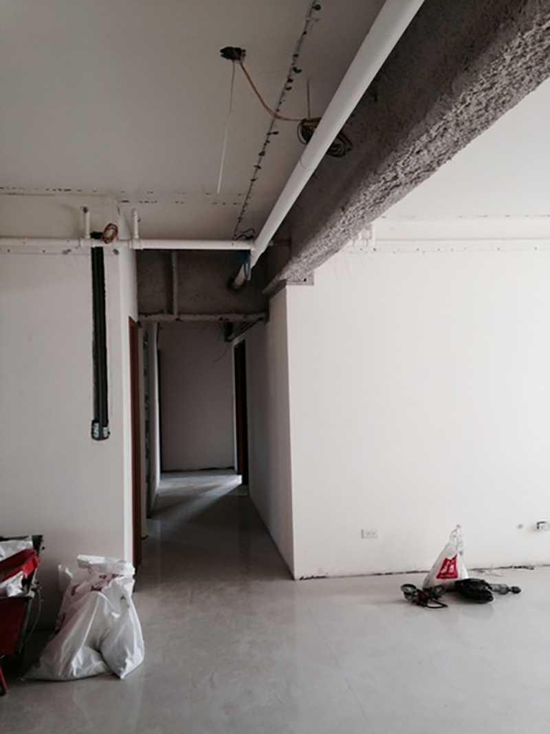 國內的建築物由於種種複雜的因素,其實未經裝修的天花板面是相當雜亂的. 除了各式各樣的強弱電線路,消防灑水管,偵煙警報器等等,最重要的就是錯落四周的大小樑.