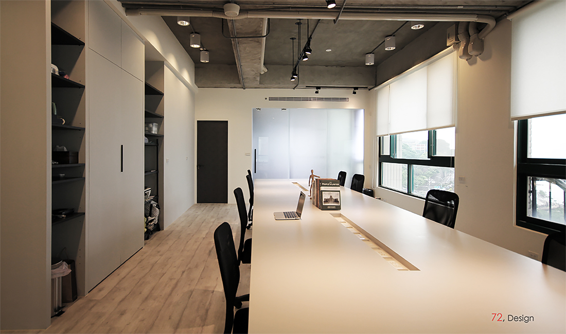 雖說我們一直都是主力專攻住宅設計的設計團隊, 但這次因緣際會接下了一個辦公室案件. 幸運的是我們和業主都有點天性反骨, 並沒有想要把辦公室打造成充滿OA家具, 看起來很「辦公室」的辦公室, 加上這個案件並不需要容納非常龐大的作業人數, 於是我們在歷經幾次的互動與討論後, 慢慢的把這間辦公室打造成更像是工作室的氛圍. 位在淡水河畔的高級窗景, 加上逼近廚房等級的茶水間, 以及完善的沐浴設備, 就算加班也可以挺享受的吧(笑).