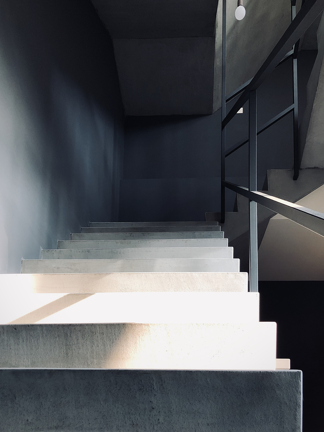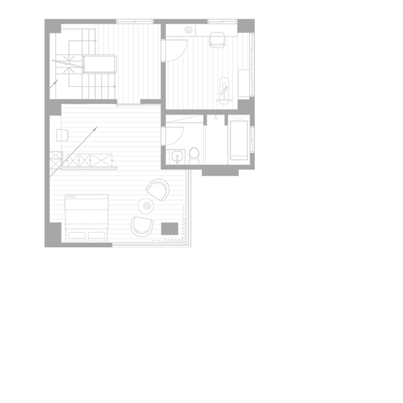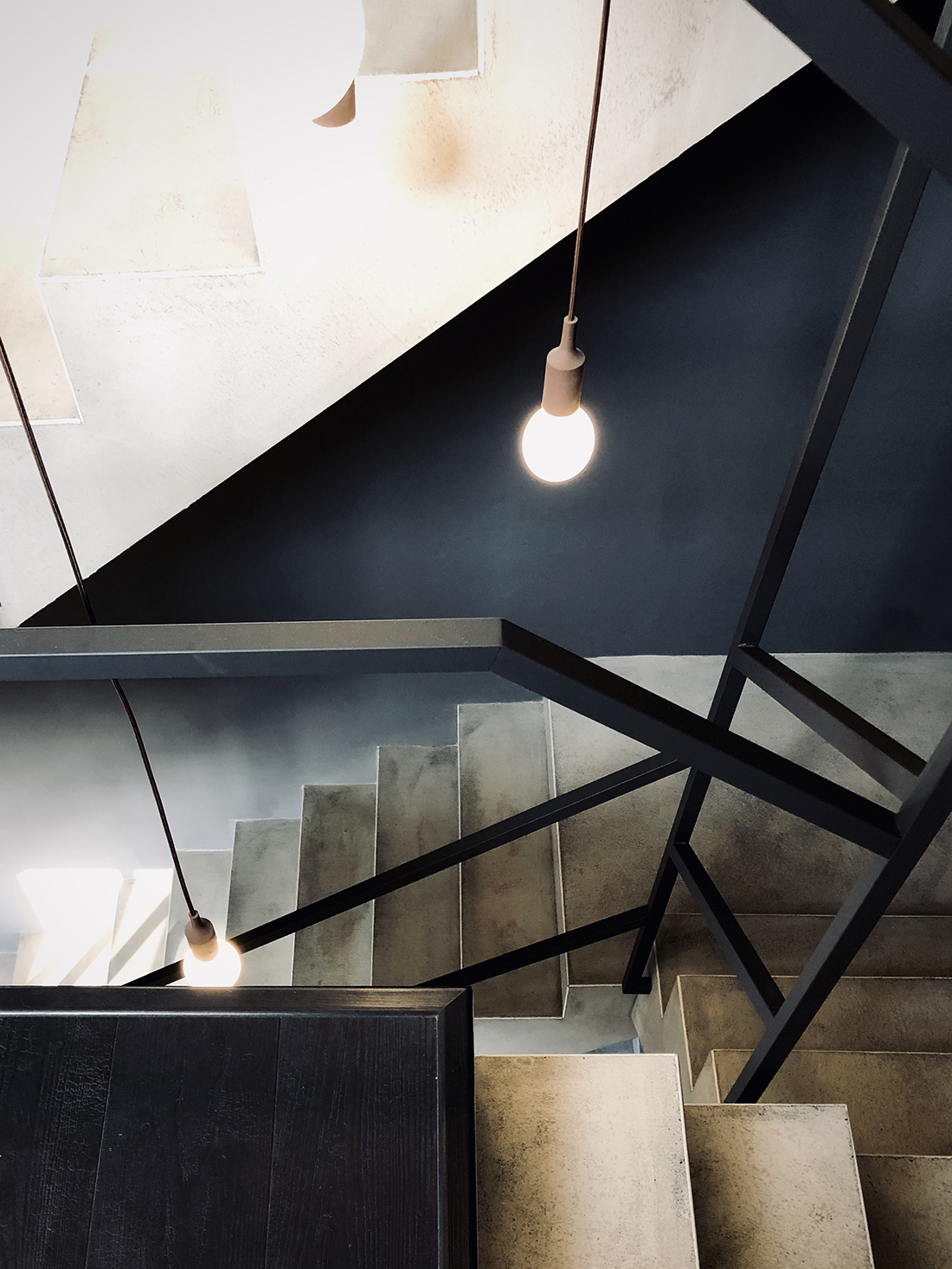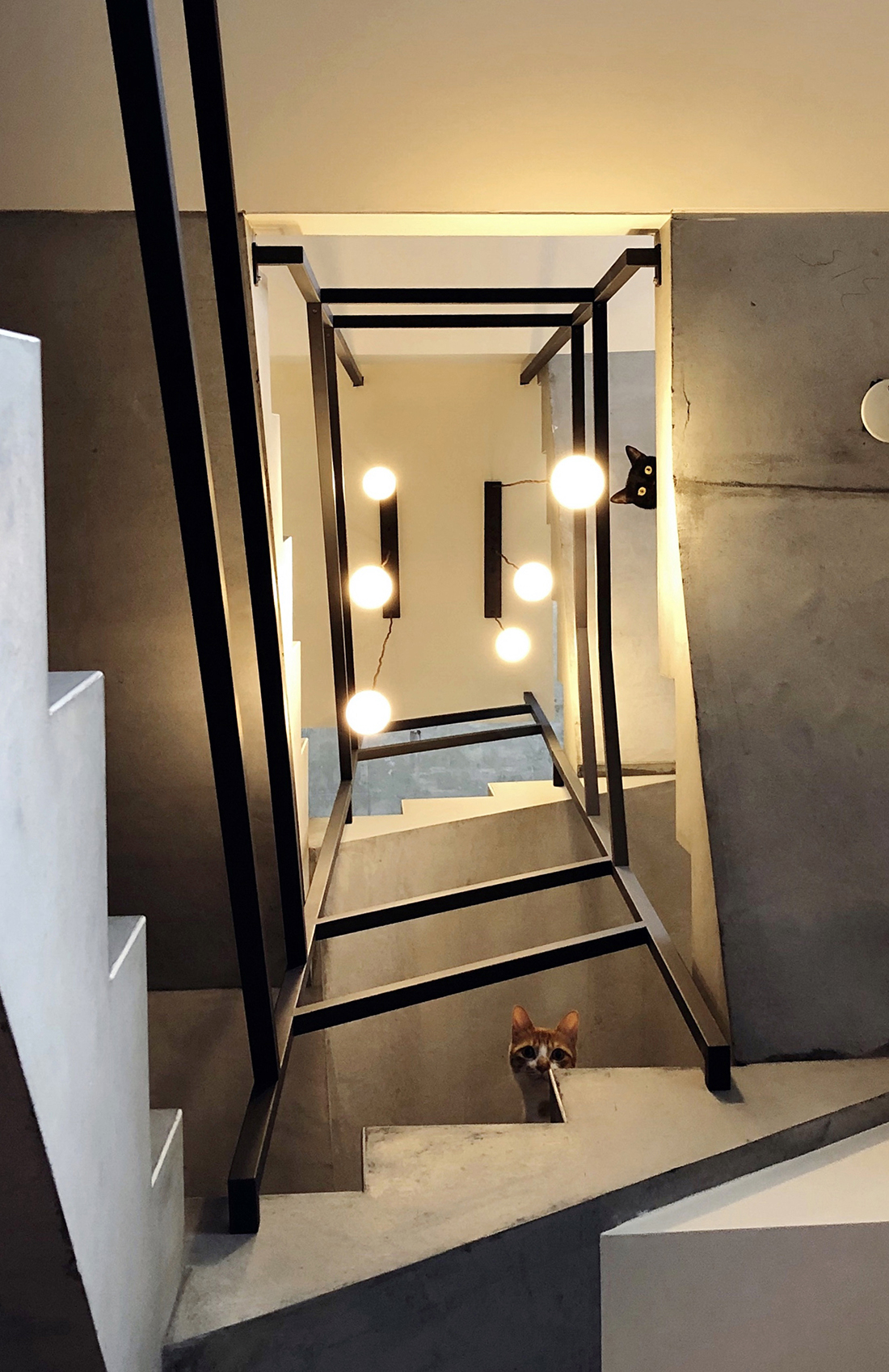 進到室內來當然就是我們的會客空間。是會議室,也是接待室,如果把中間的會議桌換成餐桌加沙發,它也可以是一個很舒適的客餐廳空間。其中的簡報用螢幕(你也可以想成家中的客廳電視)採用的是投影機形式,這有幾個很大的好處,其中之一是不需要被固定擺放的電視給佔用一整面牆,透過捲動式的投影布幕,我們可以把原本擺放電視的牆面拿來做更有效的運用,也許是櫃子,也許是展示架,或是像我們一樣放上幾幅好看的畫作。